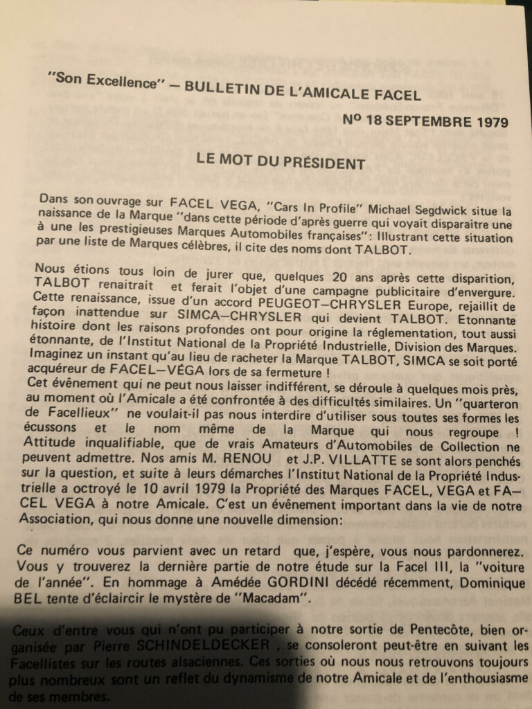 Question : il est écrit dans la profession de foi du candidat de l’équipe sortante : » … Facel Véga qui nous a été confiée par son créateur Jean Clément Daninos … »
