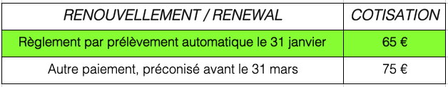Cotisation à 65€ (*) pour celles et ceux qui opteront pour le prélèvement automatique en janvier-février 2026, synonyme de simplification administrative.